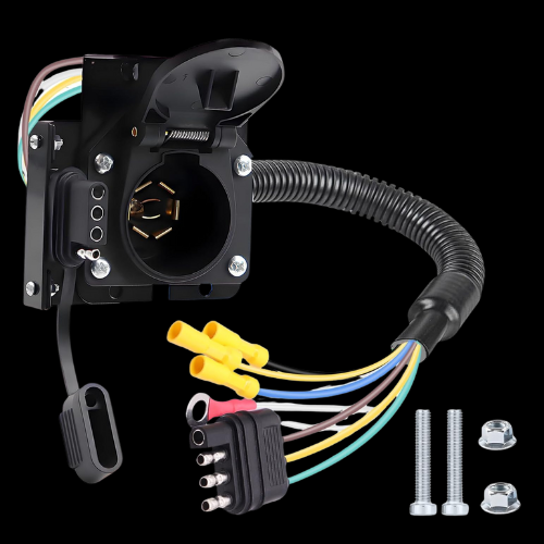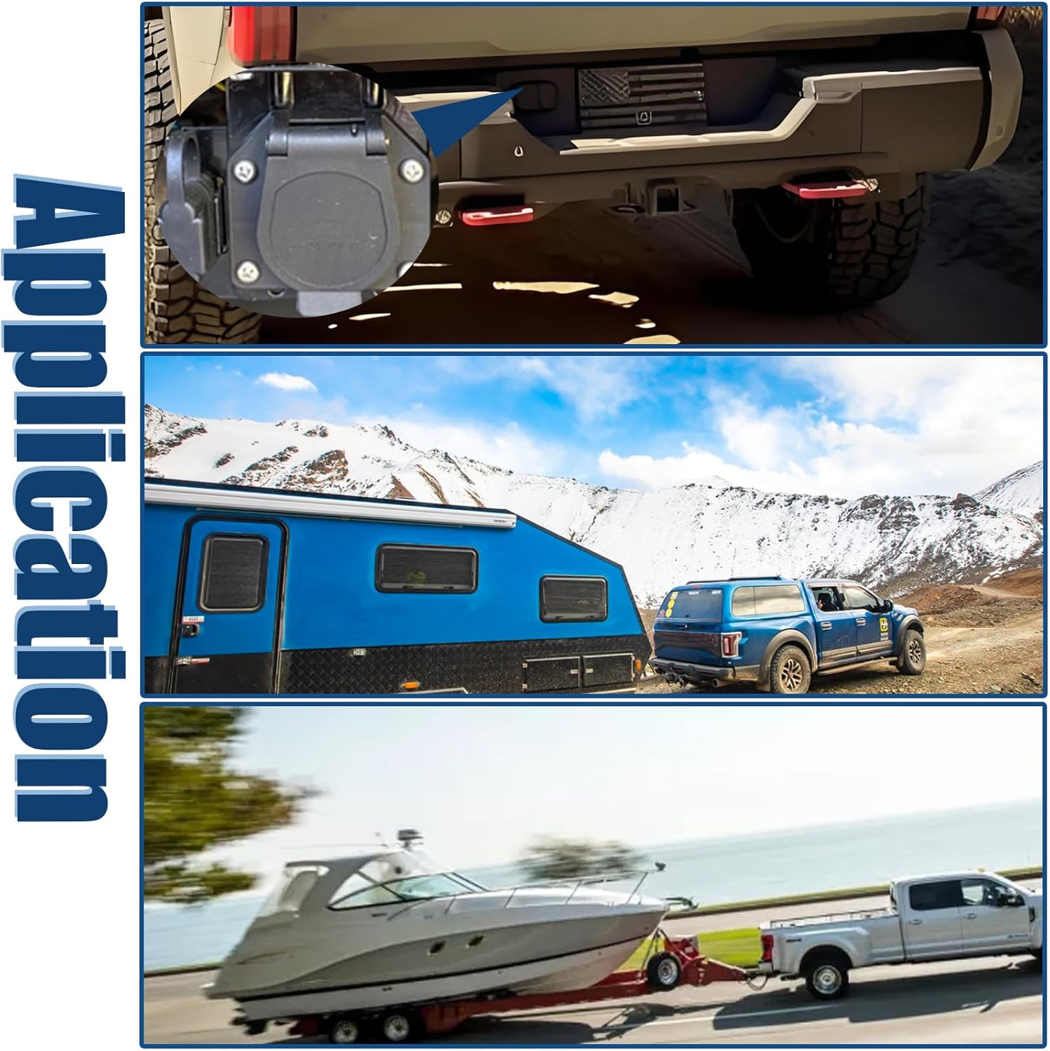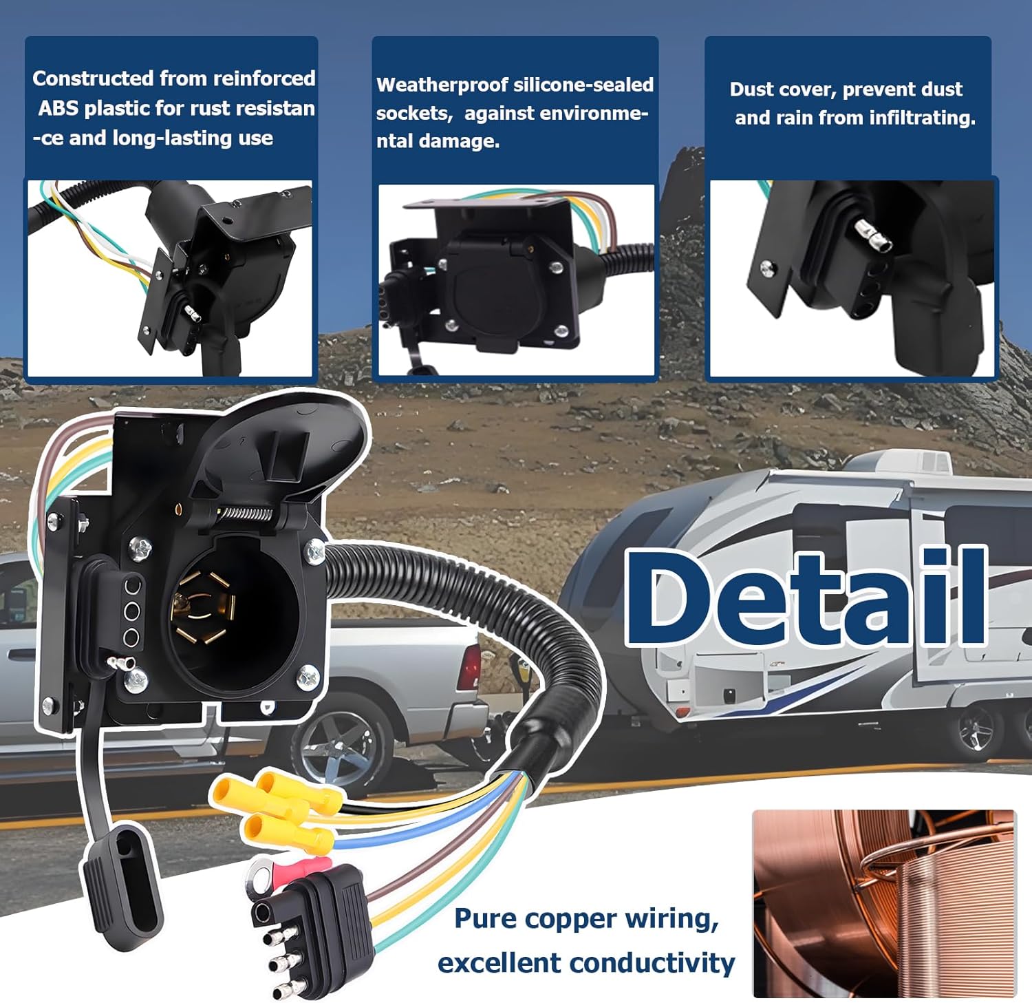 - Universal Compatibility & Versatile Towing:Dual-output design supports both 4-pin flat and 7-pin RV connectors, enabling seamless connections between mismatched vehicle sockets and trailer plugs.Converts a factory 4-pin socket into a combination 7-pin RV and 4-pin flat output, accommodating trailers with varying electrical needs (taillights, brakes, turn signals, reverse lights, and 12V auxiliary power). Ideal for towing multiple trailer types with one vehicle connector.