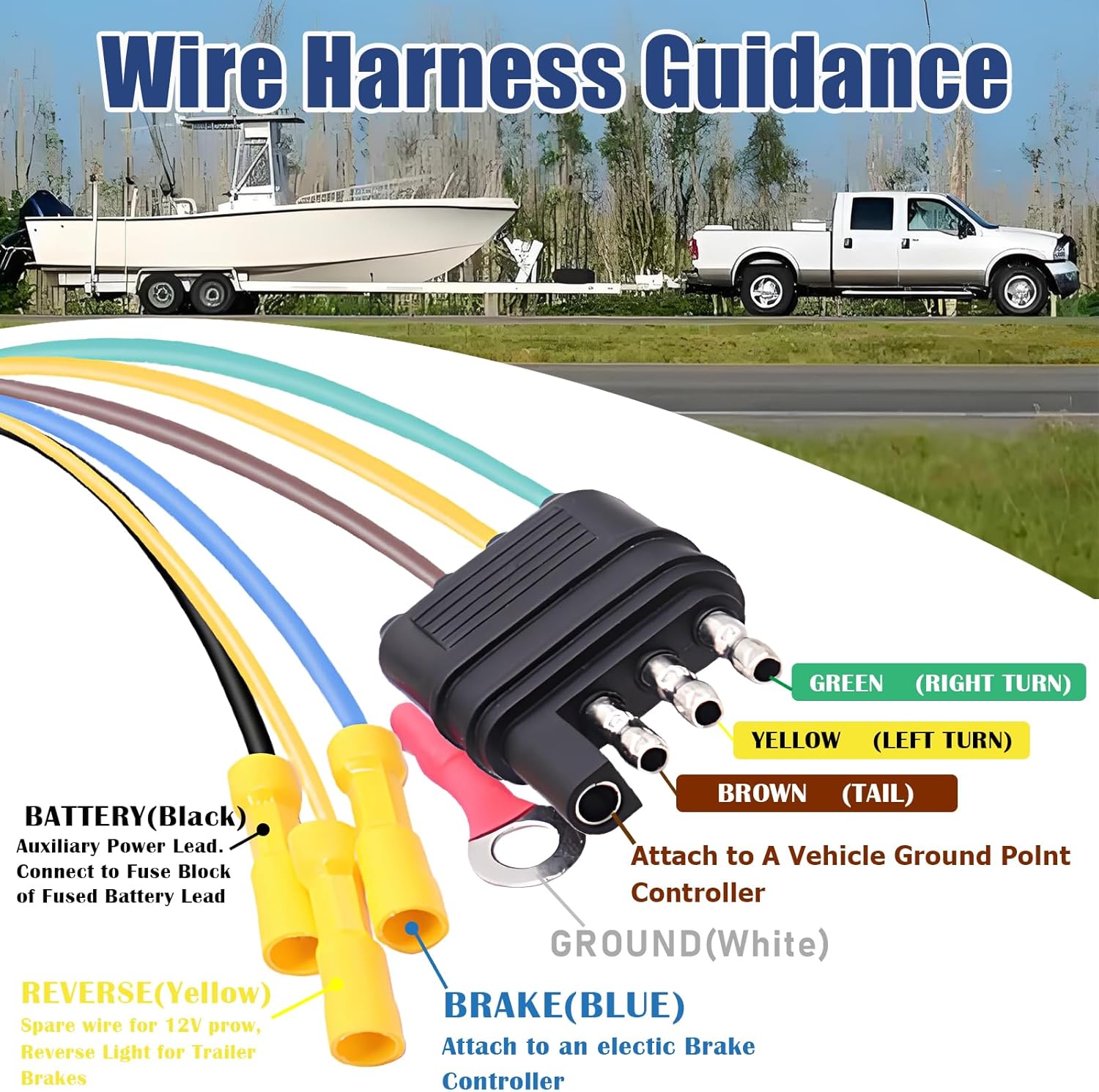 - Multi-Functional Wiring System:Additional leads for brake, reverse, and auxiliary power functions expand compatibility with trailers requiring extra circuits. Dual-output design allows simultaneous use of 4-pin flat and 7-pin RV connectors, eliminating the need for multiple adapters.